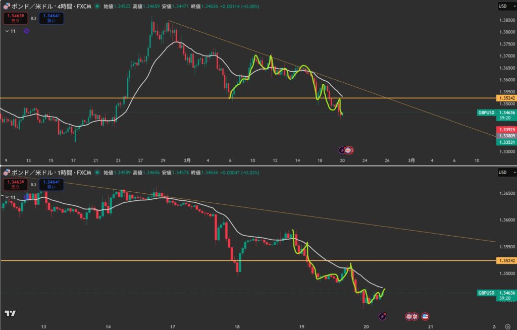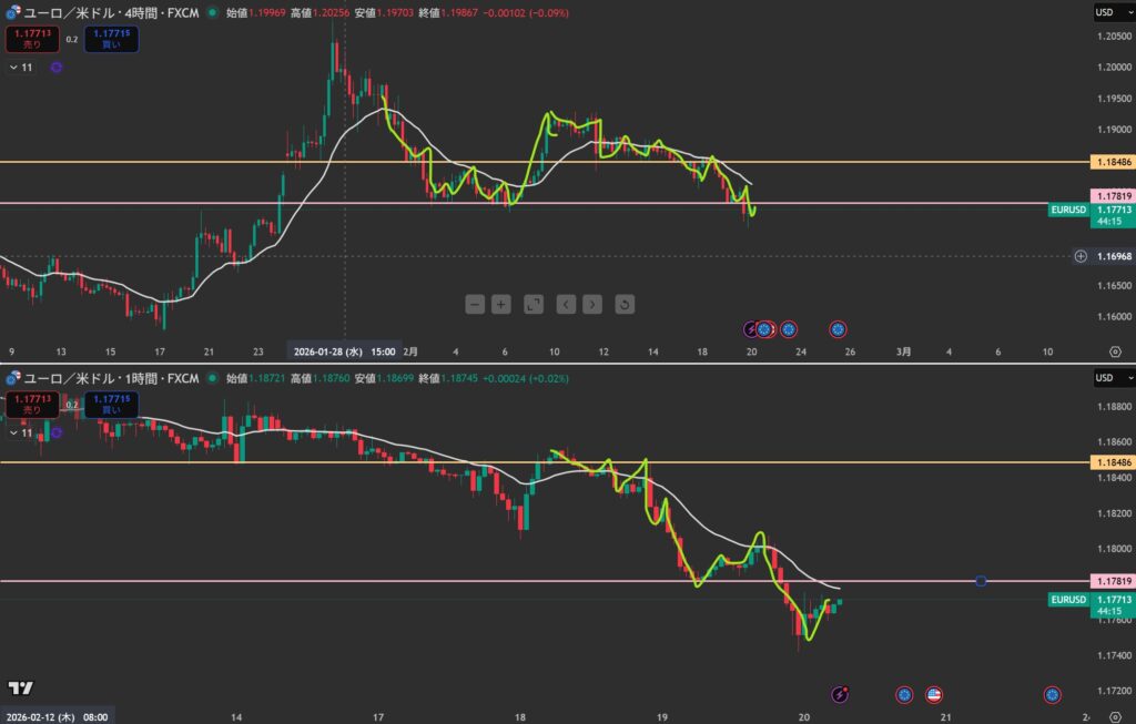 1,4hともに下降中。20EMAで反応しそう。