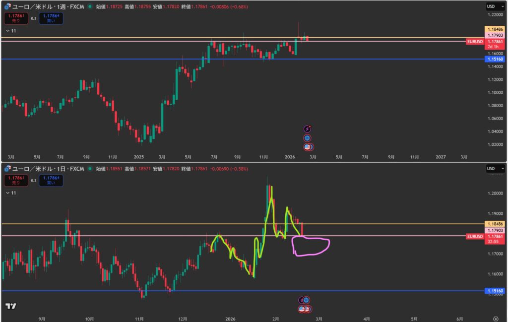 - 1時間足:緑