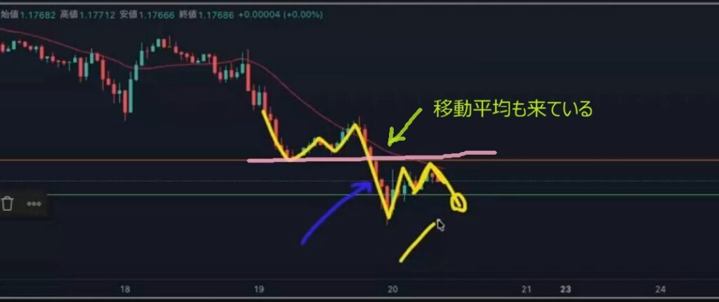 移動平均線と直近つくりつつあるネックラインが重なる位置に
