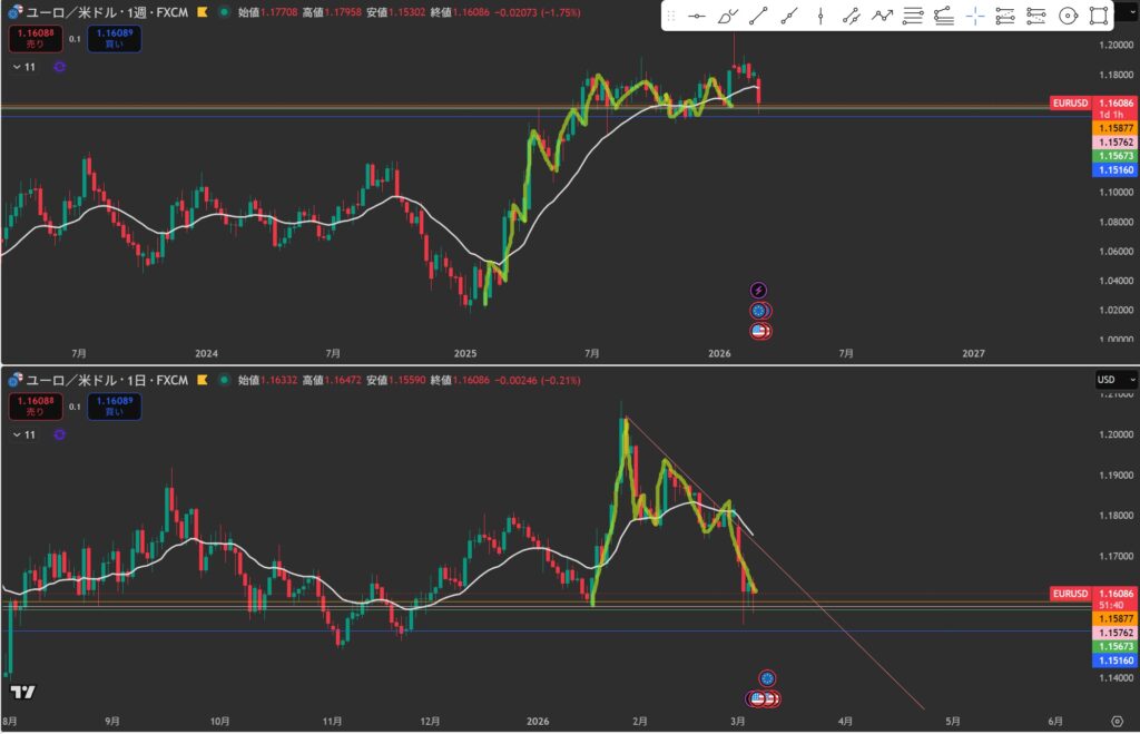 1H:移動平均線がきになる。