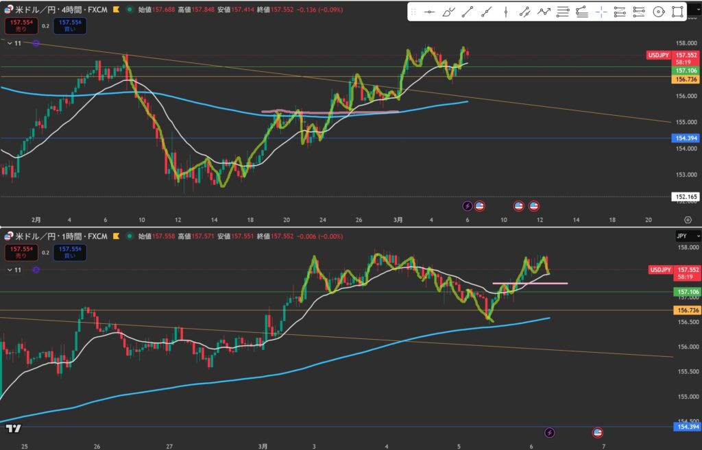 4Hの移動平均線と1Hの意識されている水平線が重なる?