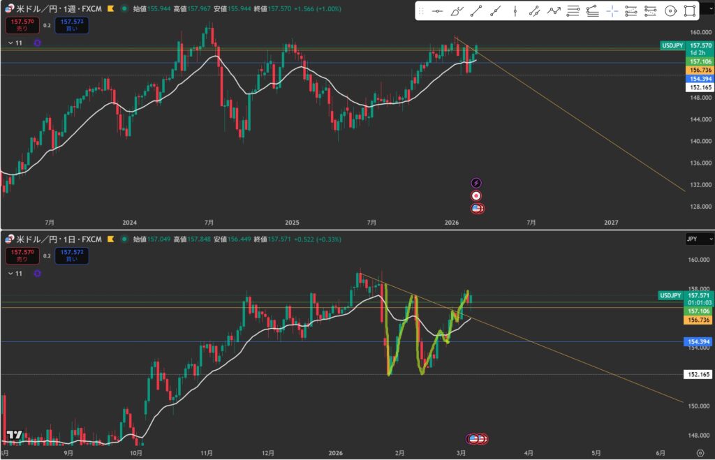 日足:下(水平線で反応するのか?