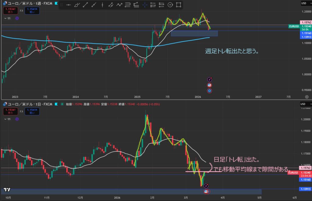 週足:下(でも止められている)→抜けた