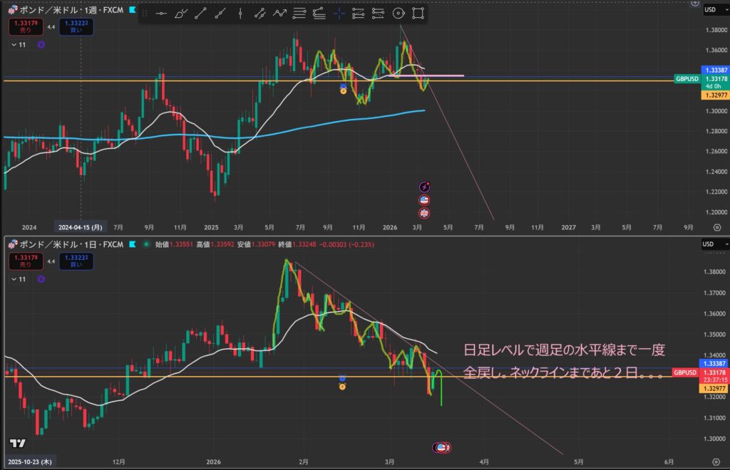 日足のネックラインと水平線が重なってきそう。