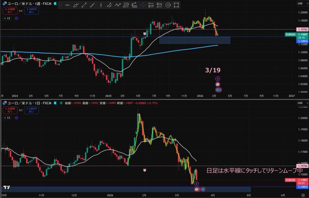 1H:トレ転出ていたの分かっていたけど、15Mのエントリーが分かっていなくてどうしてよいかわからないまま、見送った。エントリー方法を見直したい。