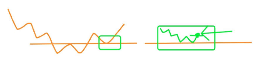 4時間足の波を狙って、下位足(15分)を見て、『ネックライン割れ』と思ってエントリーした時にそもそもの4時間足の波を忘れてしまうこと。
