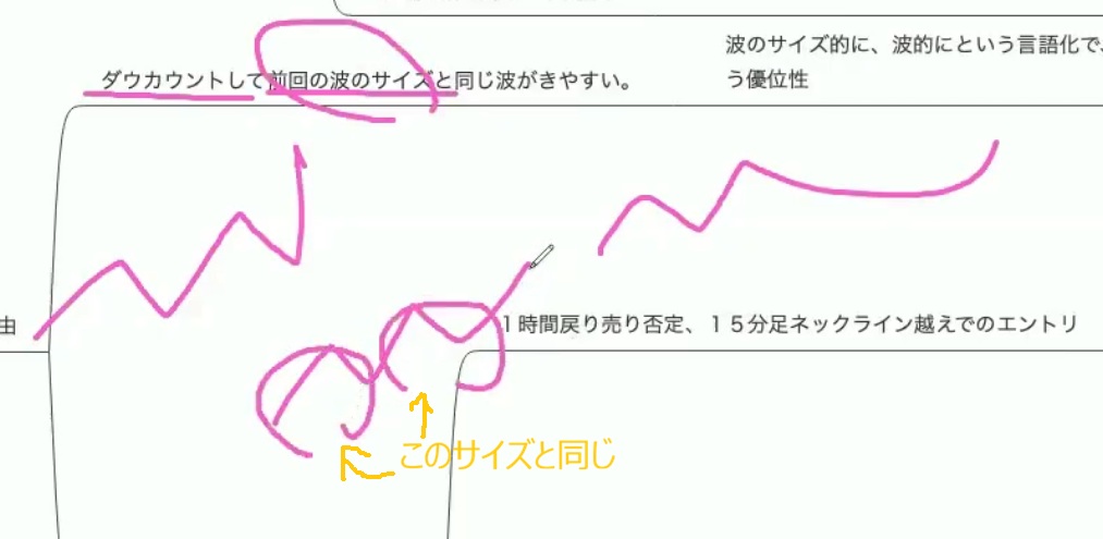 - アドバイスをゆたさんからもらった『波のサイズ感(ダウカウント)・4hのMAの位置・もっと左側を精査しての水平線など』が改善点。やってみます。