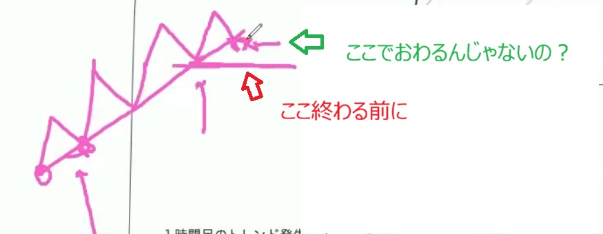1 1時間⾜の「2番に⾒えなくもない、ネックラインにも⾒える」というところで初⼼者が⾚丸でロングし、その後爆死する