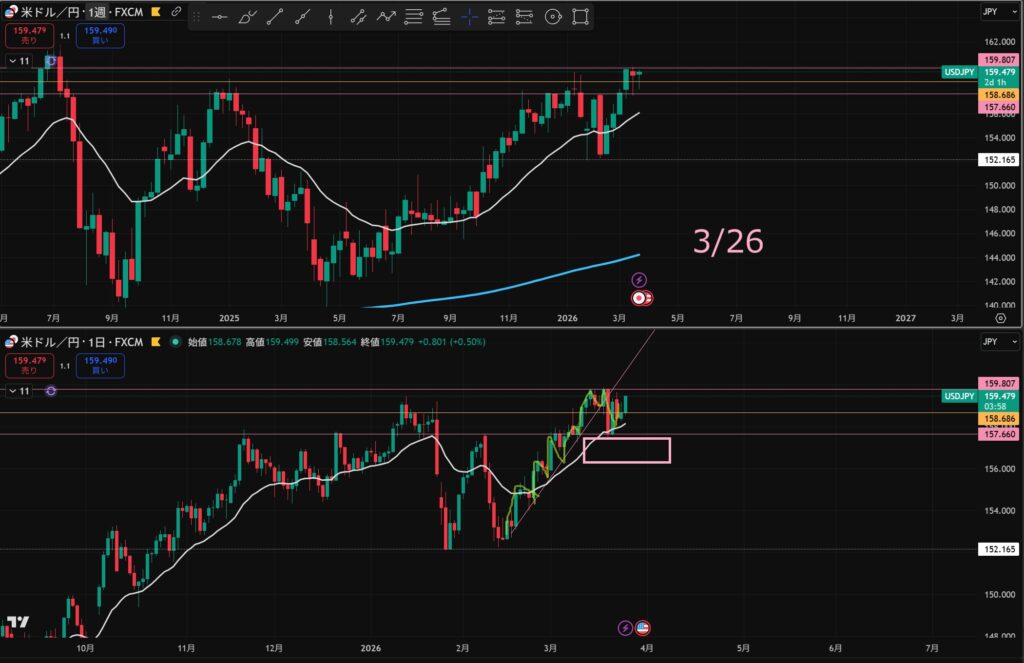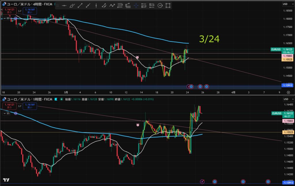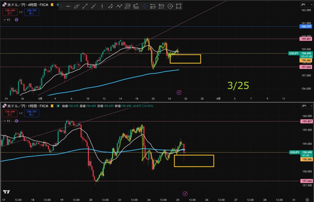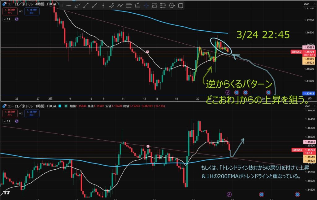 「日足の押し目買い」&「4hのトレンド転換シグナル」