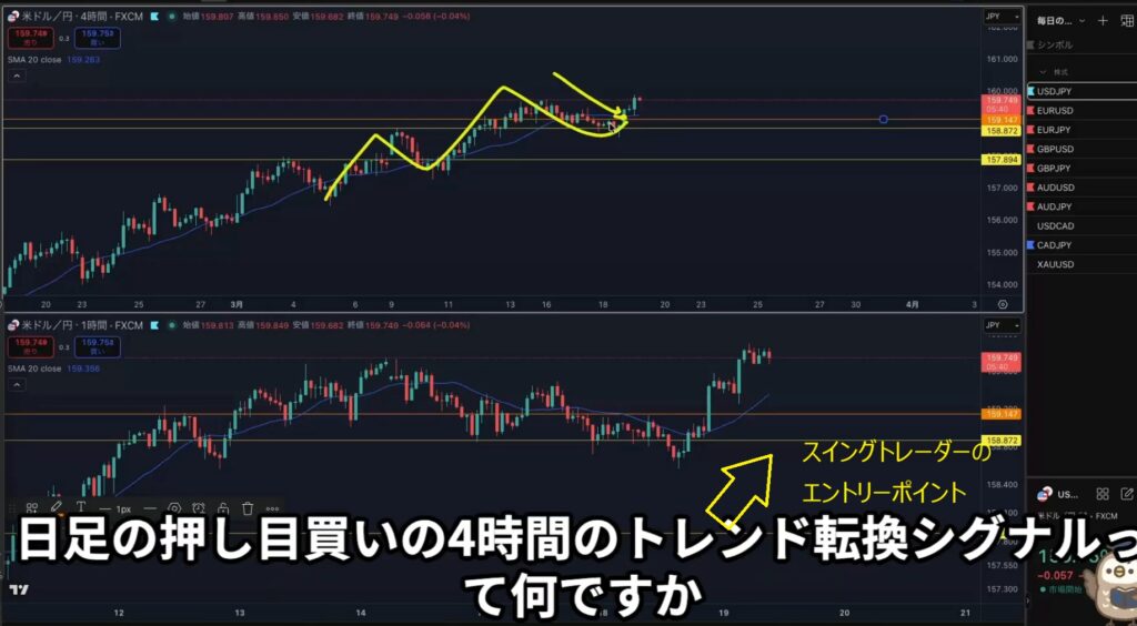 - 「日足の押し目買い」&「4hのトレンドシグナル」=「スイングトレーダーのエントリーポイント」