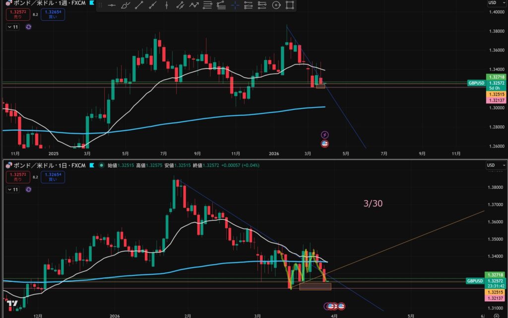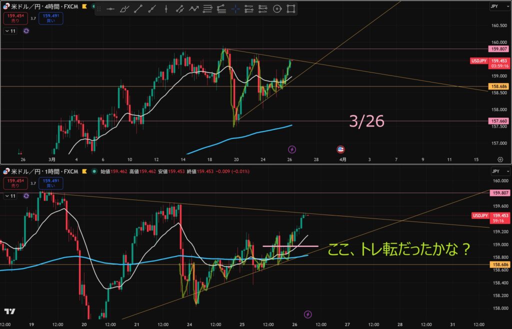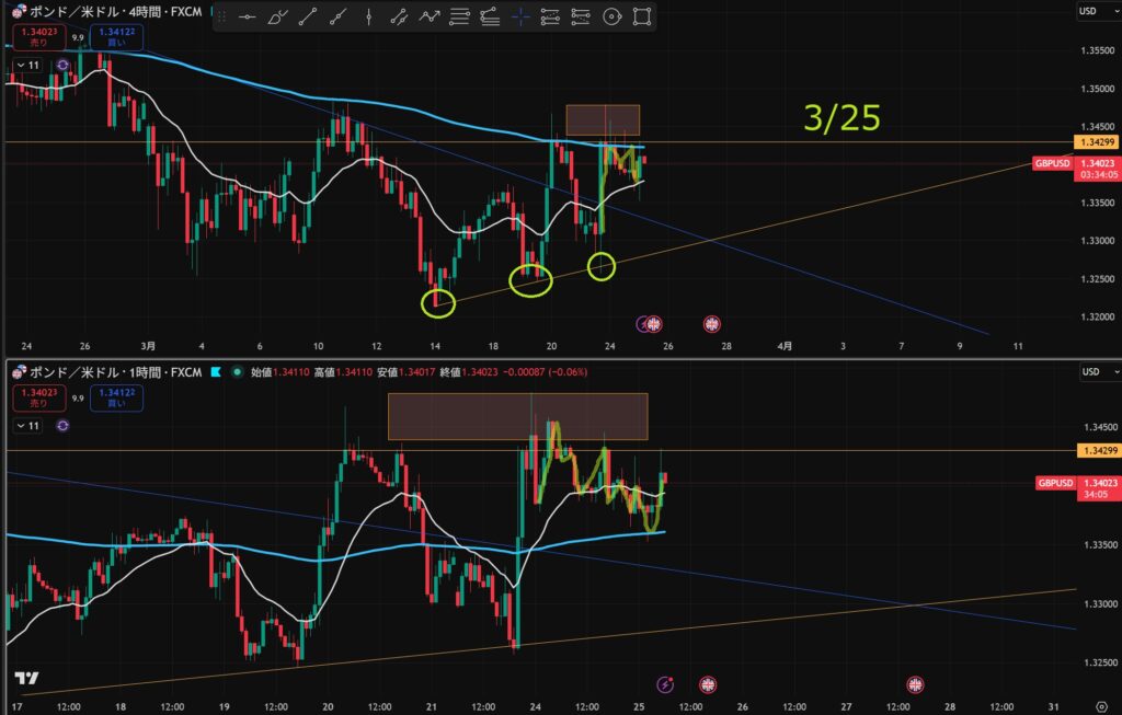 「日足の押し目買い」&「4hのトレンド転換シグナル」