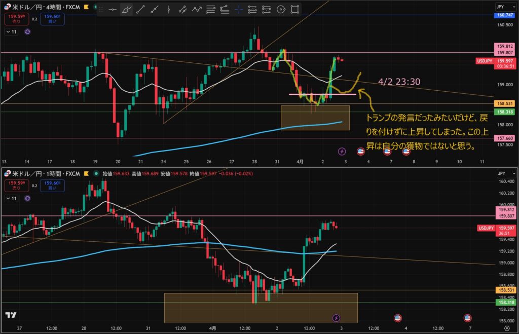 3/25くらいからの下落は取りたい波だった。もう少し『波に乗る』ことを大事にしたいところ