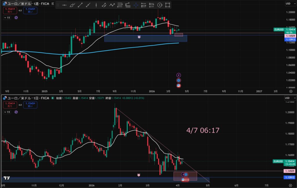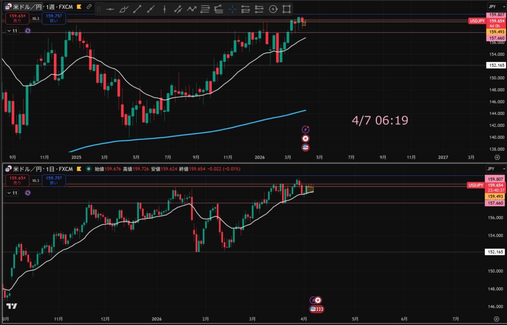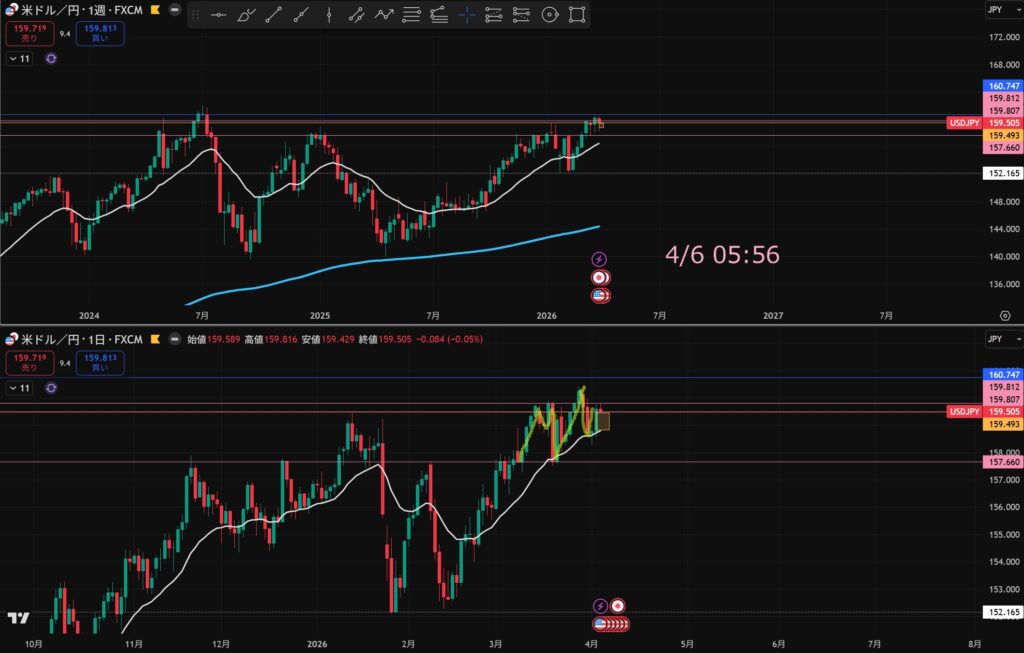 どっちに行くかわからないけど、次の日足のトレンドを待ちたい