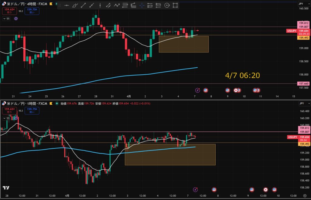 「日足の押し目買い」&「4hのトレンド転換シグナル」